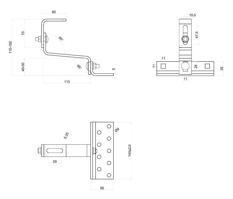 Dachhaken Edelstahl 1.4032 S304 Nicht magnitsch 3-fach verstellbar 145 mm L .
